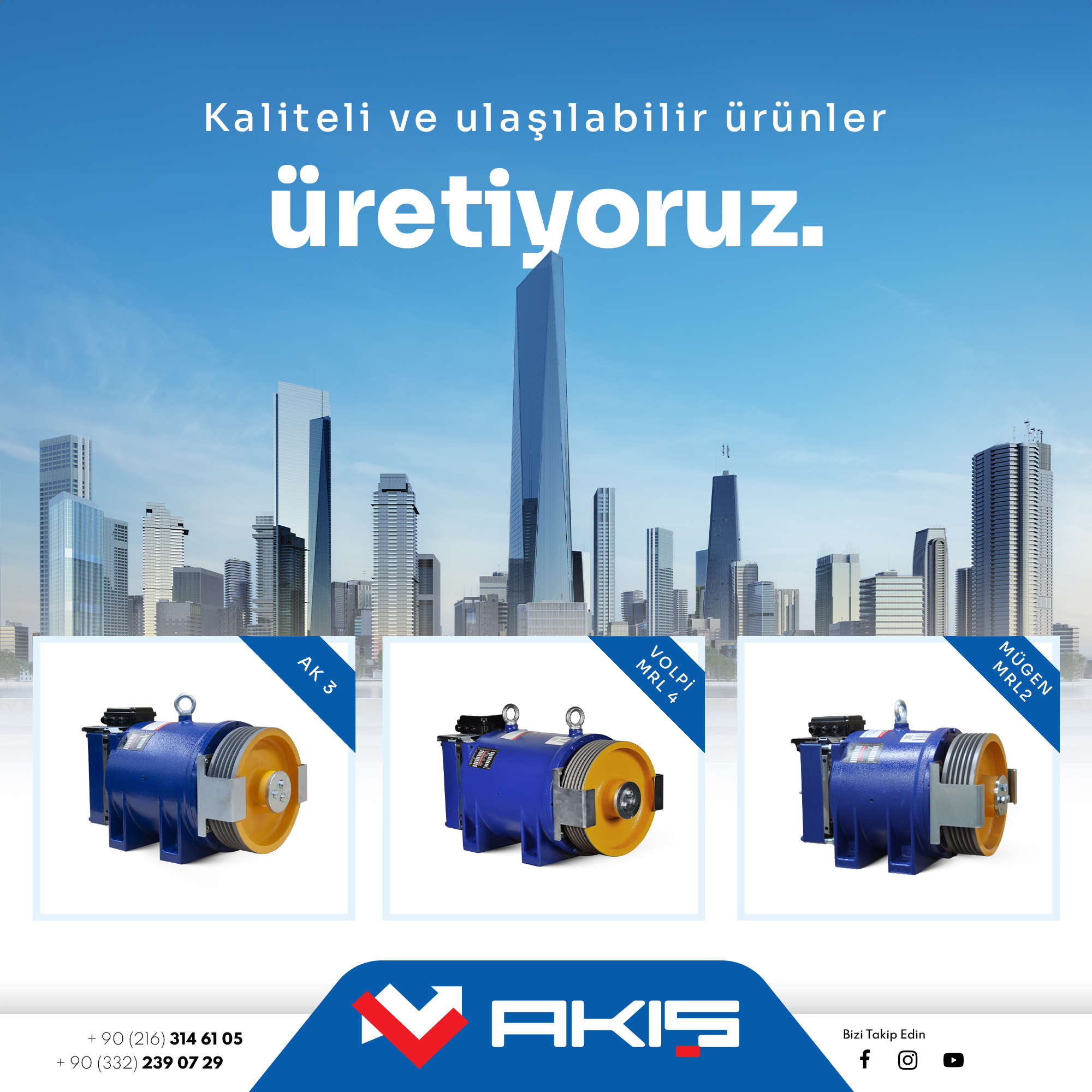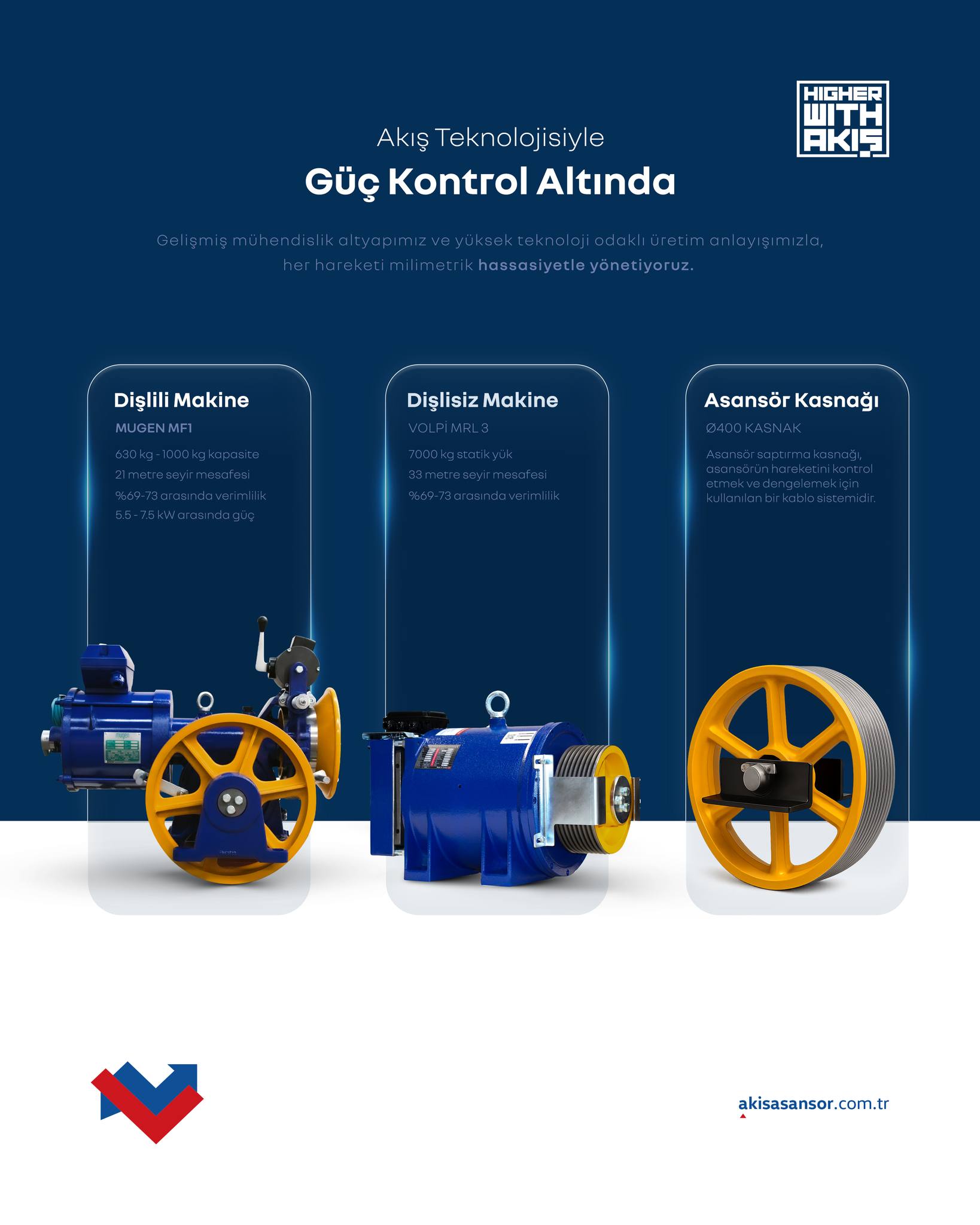 Akış Asansör Teknolojisi ile gücü tam kontrol altına alın ve asansör sistemlerinizin verimliliğini zirveye taşıyın. Akış, gelişmiş mühendislik altyapısı ve yüksek teknoloji odaklı üretim anlayışıyla, her hareketi milimetrik bir hassasiyetle yönetmenizi sağlar. İster geleneksel çözümlerden yana olun, ister en yeni teknolojileri tercih edin, Dişli Makine (Mugen MFI) ve Dişsiz Makine (Volpi MRL 3) seçenekleri size geniş bir yelpaze sunar. Dişli makineler 930 kg’dan 1900 kg’a kadar kapasite ve %69-73 arası verimlilik sunarken, dişsiz makineler 7000 kg’a kadar statik yük ve %97-73 arası verimlilikle öne çıkar. Akış, sınır tanımayan performans ve kaliteyi bir araya getirerek, projelerinizde güvenilirliği ve yüksek verimi garanti eder.